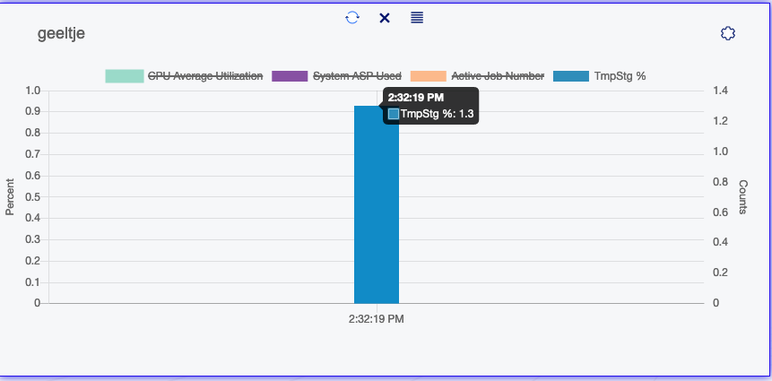 Pressing OK will bring you back into your graph and the new value will be displayed. For this article I have made the choice to display the value as it is available in the Db2 for i Service View called “QSYS2.SYSTEM_STATUS_INFO_BASIC”. If you wish you can do the math by turning this into a percentage of the disk space used. Before you are getting eager to figure this, out hang on a minute. Was that percentage not already available in the New Navigator for i, in the tiles of System Status?