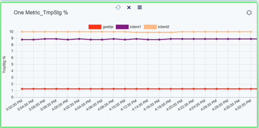 Again we can add a metric to “Custom Charts” and after repeating what we did for the metric “Current Temporary Storage” we can now bring the Temporary Storage % into vision: