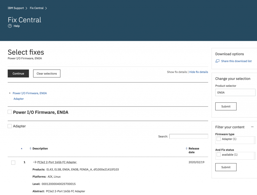 I also learned that for some FC adapters you need to update the microcode of every port of that adapter, for some updating just one port will do. Also you are instructed to save the configuration of the adapter, just in case. With my IBM i background I have to pinch myself and remember that we are living in 2020 and updating an adapter is something we in the IBM i world never bothered about.