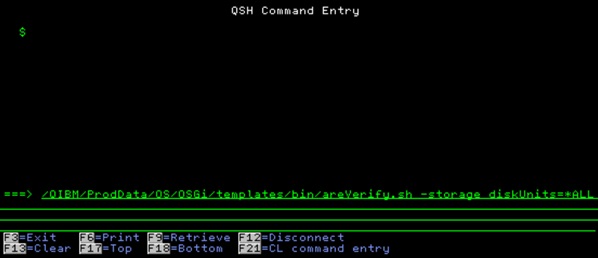 /QIBM/ProdData/OS/OSGi/templates/bin/areVerify.sh -storage diskUnits=4