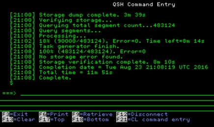 ProTip: The progress is also written to a text file in the IFS, so if you are running the command in batch, you can check this log file using command: DSPLNK ‘/tmp/areDodReport.txt’
