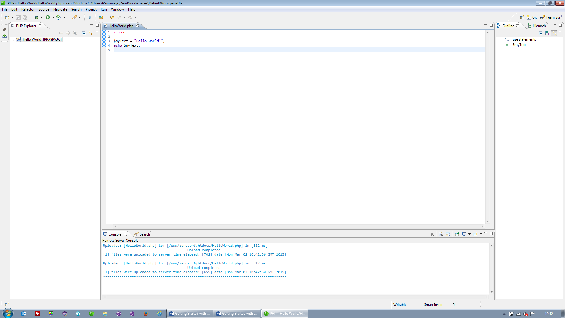 Zend Studio provides a whole load of functionality to help you develop web applications, most of which would just be confusing for a beginner. So let’s start with that most basic of basics, the Hello World program.