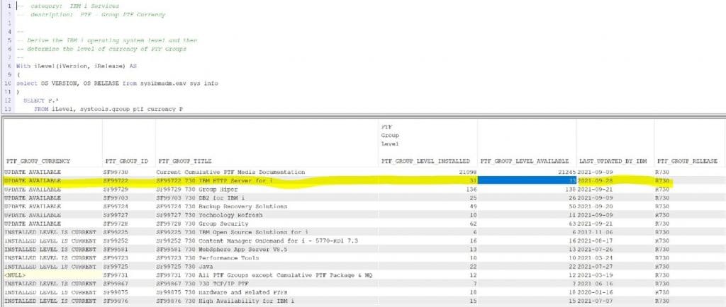 As you may well recall there is an IBM i Services called PTF group currency, it is part of your ACS Insert from Example set, so you should be able to find it easily enough but just in case there is a copy below: