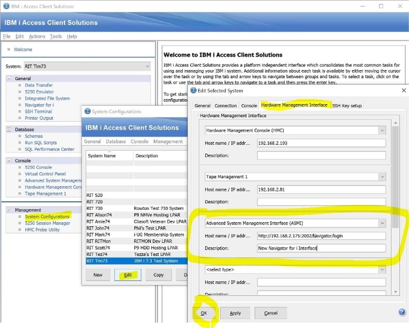 ProTip: If you are using other IBM i Browser based interfaces to interact with this LPAR e.g. Admin Runtime Expert, WebQuery or even just a Tape Library or HMC then you can add them to this same ACS interface and keep all your shortcuts together and in context for this system.