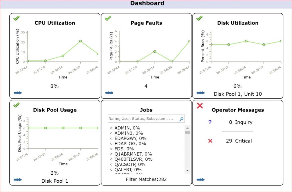 As well as looking impressive to your boss, I like this interface because you can give it to a “None IBM i” techie to monitor and in no time at all they seem to embrace it and make it their own. This is a far cry from the reaction you might get if you asked them to keep an eye on the WRKACTJOB or WRKSYSSTS commands ????