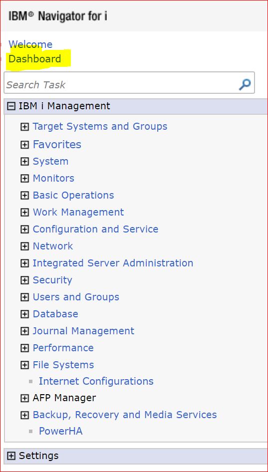 Once logged in you will be using the replacement for IBM’s old Windows based GUI client Navigator for i (or Deadnav as I like to call it).
