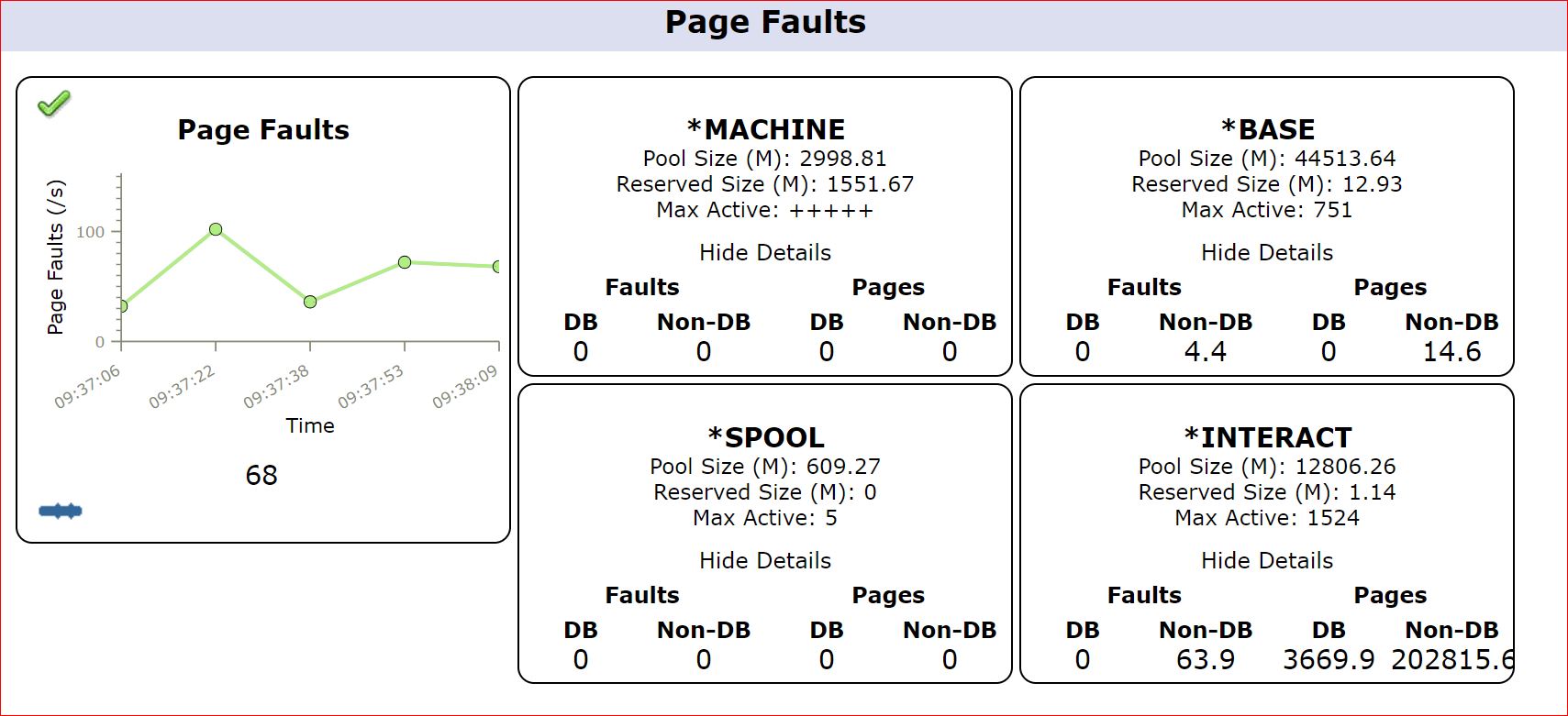In this example we can see that the system is generally happy with the amount of page faulting, and that most of the work being done on this system is being done so by Interact Sessions.