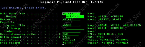 The ‘allow cancel’ is because the customer does have processes running pretty much 24×7 and so while they’d like to do a re-org they don’t want it getting in the way. ‘Rebuild access paths’ has also been specified as NO to again try and ensure the maximum amount of processing is done, but has the knock-on effect that it’s more likely that my LFs aren’t being fully re-organised.