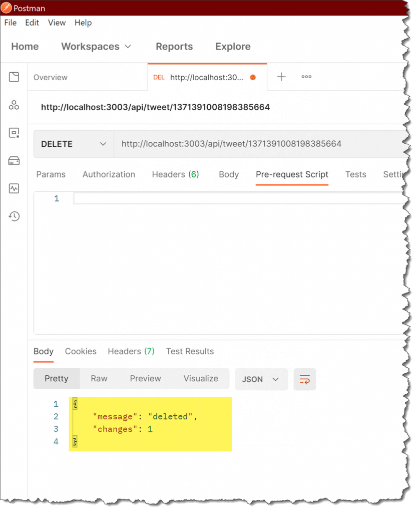 For the getting all tweets and the individual tweet, I could use a browser to perform a HTTP get to test those two endpoints, but as the delete a tweet method uses the DELETE HTTP method, I will be using a great utility called Postman.