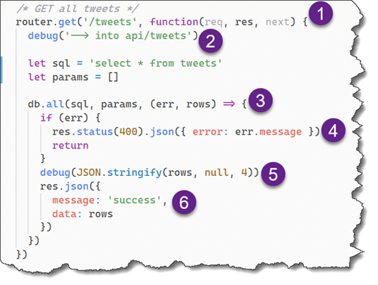 The first endpoint we will code, is the endpoint to get all the tweets we have stored in our SQLite database.
