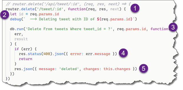 - Delete a tweet (Not really necessary for this exercise, but I’ve included just to show how to add an API endpoint with a different HTTP method.) – Uses Delete method.