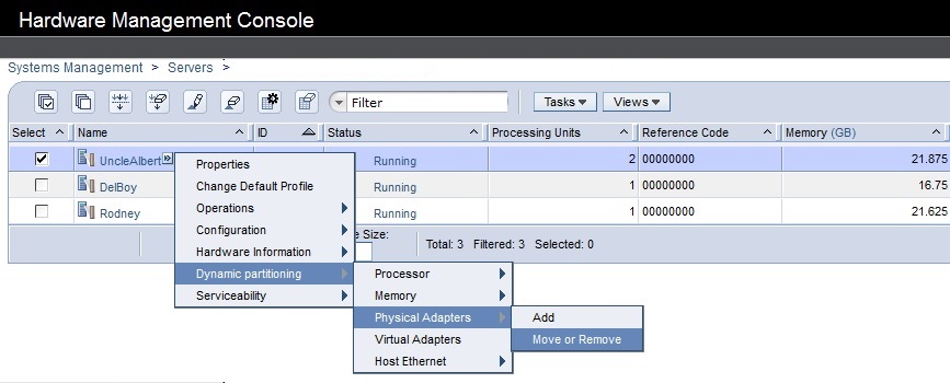 Pro Tip:This is very handy on a HMC managed system where you want to build multiple LPARs based on a single image. e.g. creating a standard test environment. In this scenario you can simply move the Flash drive contents the between LPARs by moving the USB controller and perform a D Mode IPL. The screen shots below show a couple of typical images when carrying out such a move between LPARs on the same system.