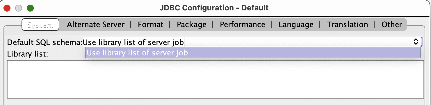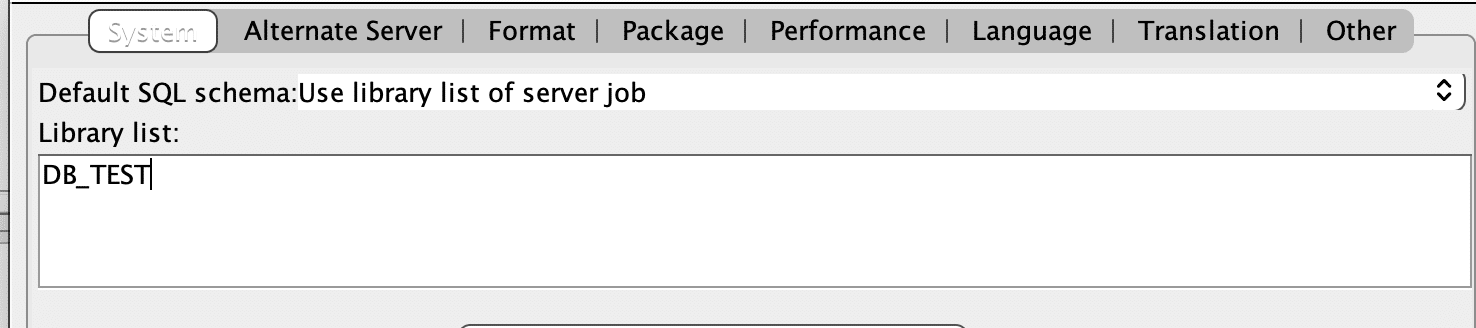 Here we can see that based on the value for “Default SQL Schema” the library list is taken from the server job: