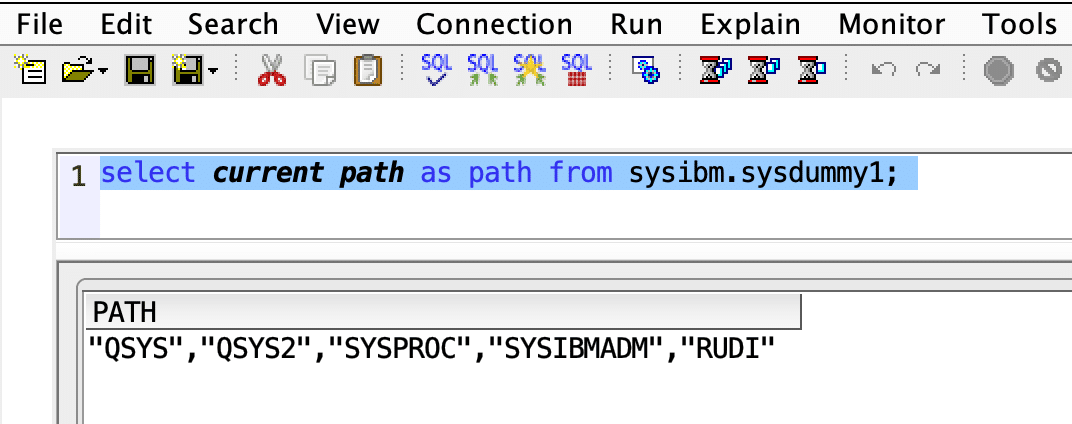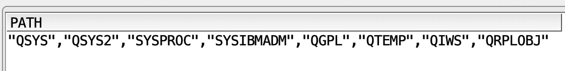 Which server job? you may ask yourself. The answer is that in this case the path is set based on the System Path, which consists of “QSYS”, “QSYS2”, “SYSPROC” and “SYSIBMADM”.