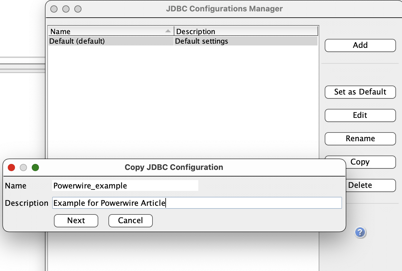 - Instead of using the Default JDBC configuration, create your own.