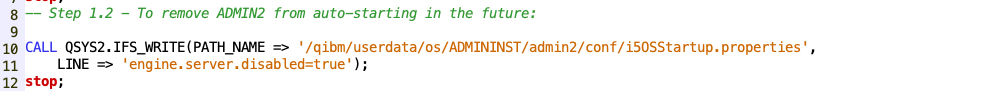 If you need to use functionality in the heritage version not yet available in the new Navigator for i, you can change the “true” into “false”. In that way you are able to start it using the following command: “STRTCPSVR SERVER(*IAS) INSTANCE(ADMIN2)”.