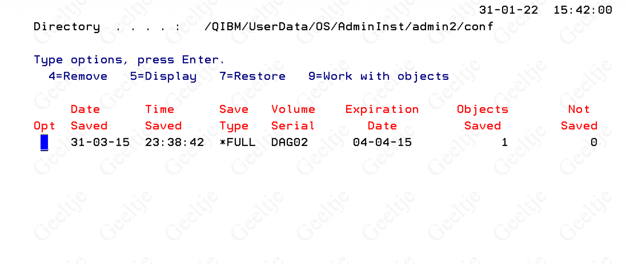 “WRKLNKBRM DIR(‘/QIBM/UserData/OS/AdminInst/admin2/conf’)”