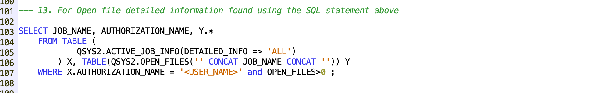 As mentioned in the test of the image above, the Open File information can be added in this SLQ statement to limit your search.