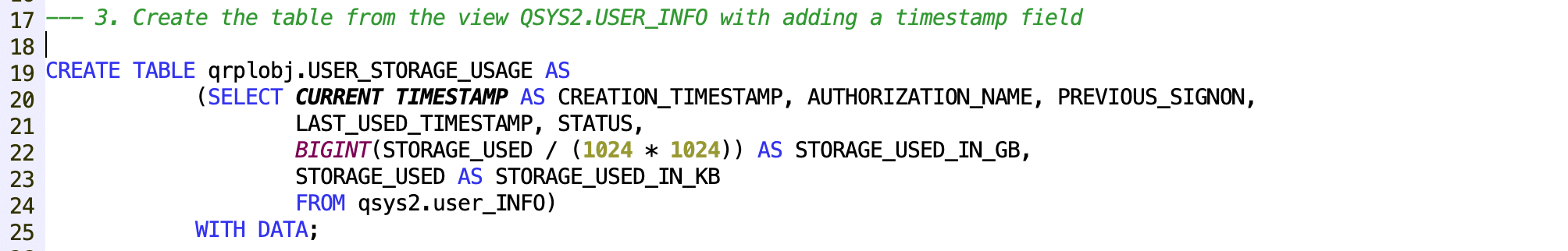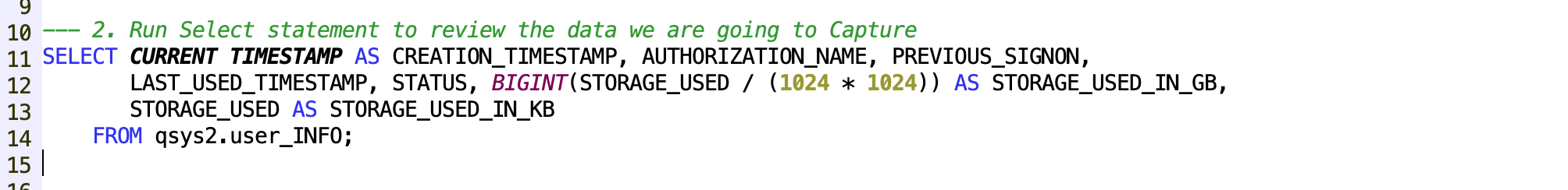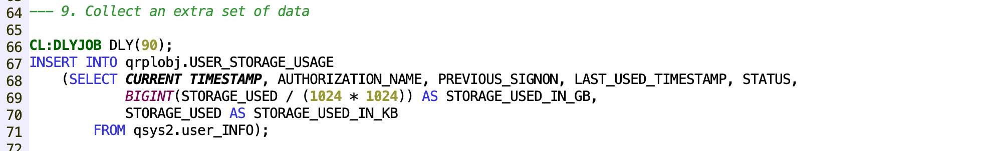 What this script does is using the Db2 for i Service called “QSYS2.USER_INFO”. By creating a table based on a few of the available fields available in that view and adding a Time Stamp field. You are able to to make a few snaps allowing you to see where the growth of space usage is going to. I am using the library QRPLOBJ for storing my data, knowing that an IPL will always cleanup what I store there.