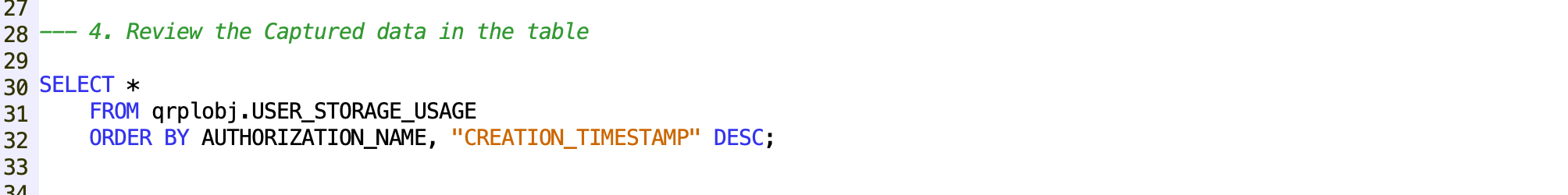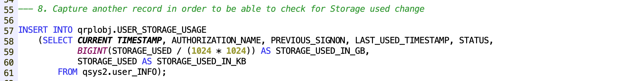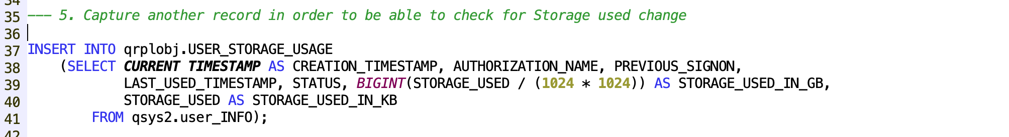 Adding more data using the INSERT statement allows you to view the change in “Storage_used” by a user.