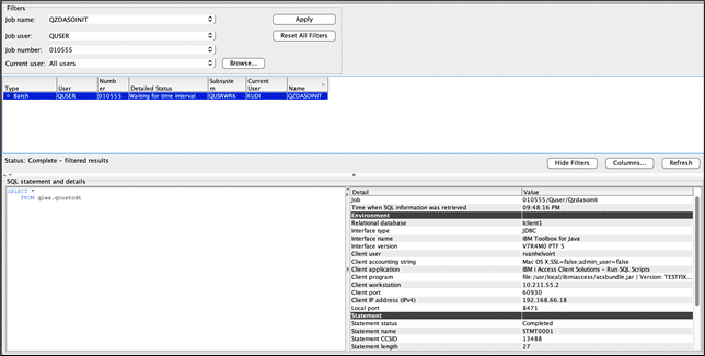 As you can see the IBM i user is available and the IP address, just to name two.