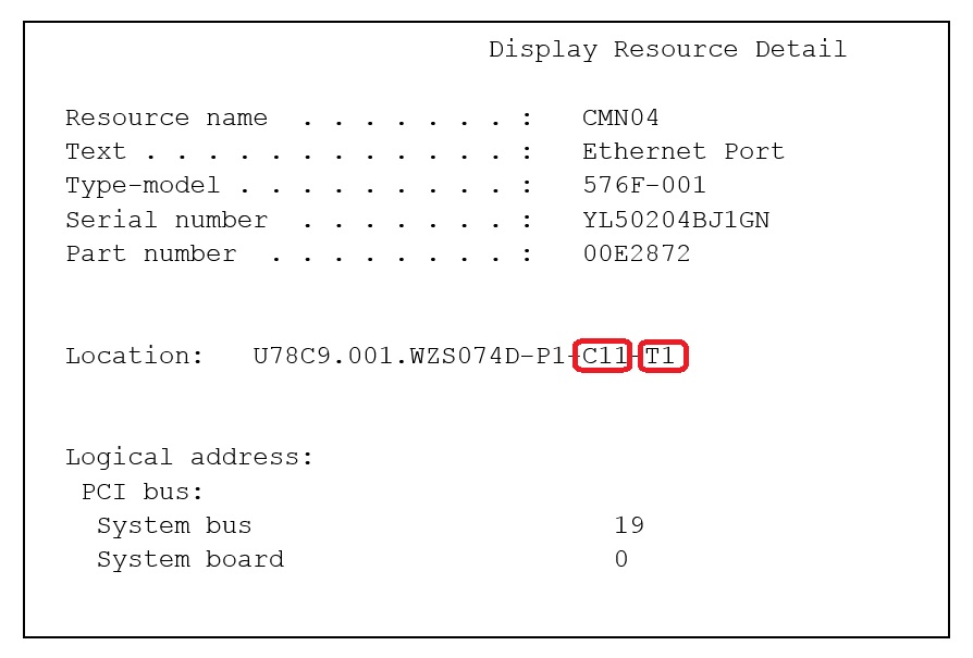 In the example above we can see that CMN04 is T1 (top) port of the Ethernet card in slot C11