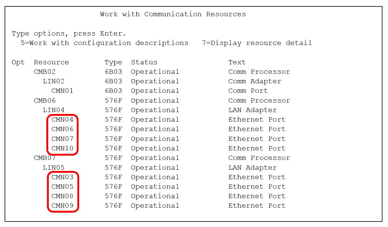 Protip: If you want to know which card and port number each of these CMN resources physically belongs to then place a 7 next to them to display the resource details.
