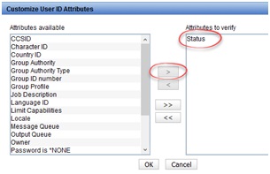 Here we can see all the user profile attributes we can check, select the status to move it over to the right hand panel. This will check the status is *Enabled.