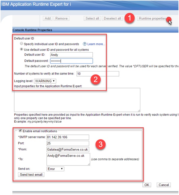 Instead of specifying User and Password each time, you can set default values by selecting Runtime properties.