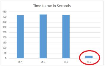 There is no such fudging of the figures here, though. I took a horrible Query/400 query that runs on real-world data and recorded how long it took to execute at v5.4, v6.1, v7.1 and v7.2 of IBM i. This was run on the same server every single time with the same processor, RAM and disk configuration, and using the same controls. The only variable was the operating system level.