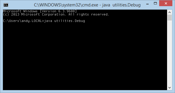 Open a Windows command box, or DOS prompt for us old ‘uns, and enter: java utilities.Debug. Being good old Java, beware of case when entering this.