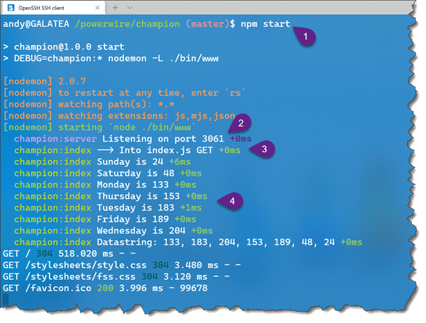 Lastly, use a SSH session to start up the server, which can be seen below,