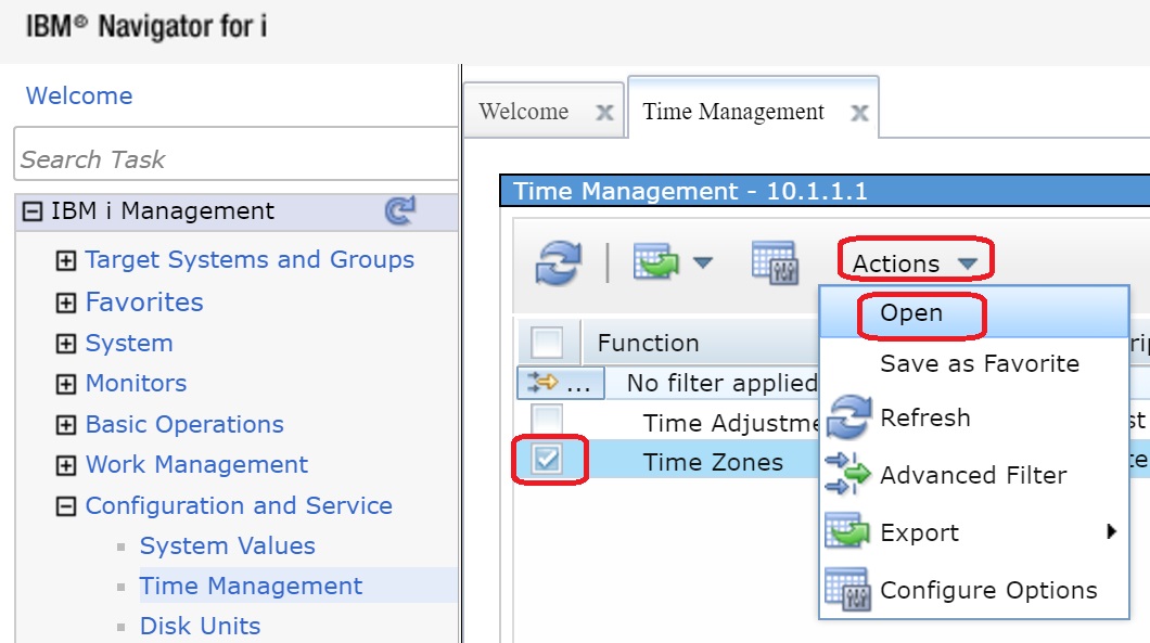 Do this by clicking the + to expand the Configuration and Service tree, then select Time Management