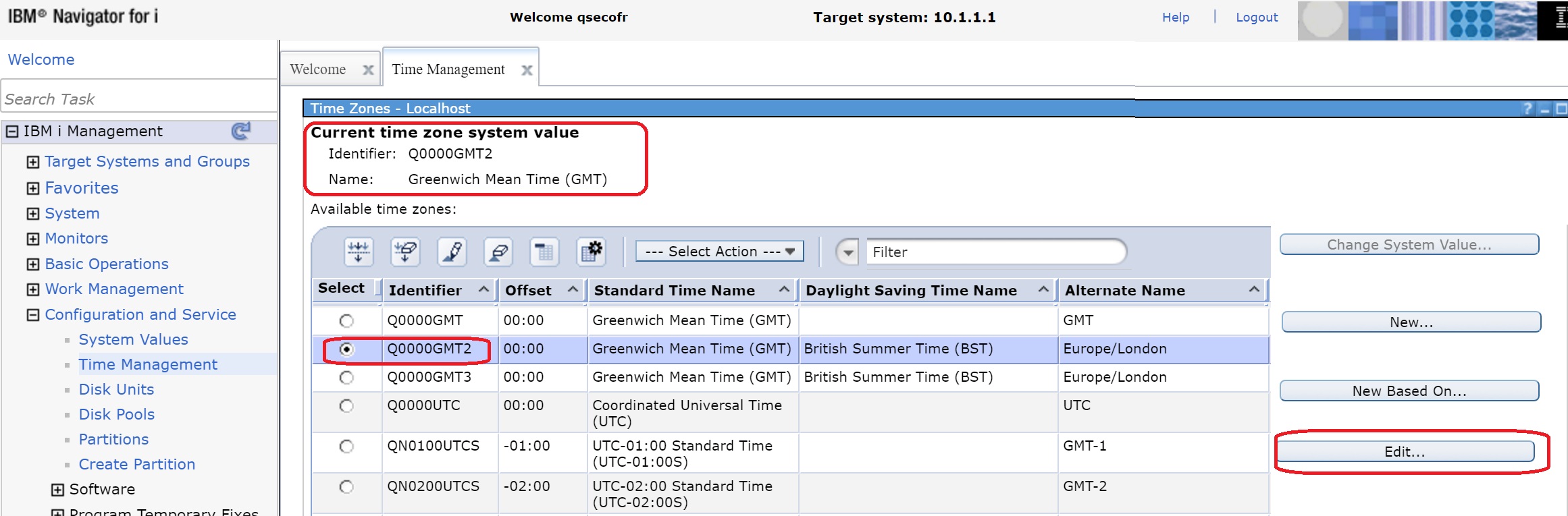 Check the Time Zone you current have set, if correct select it from the list (if incorrect select the correct one from the list) then click Edit