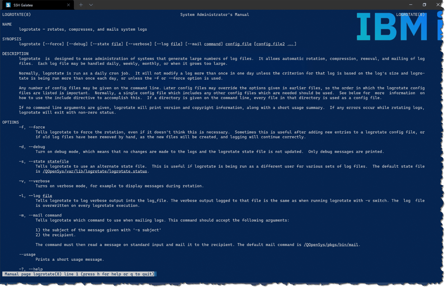 Using man, we can see the manual for logrotate.