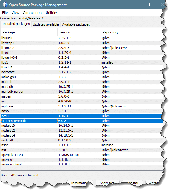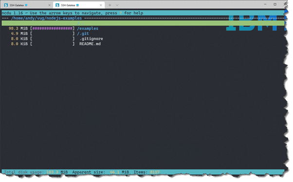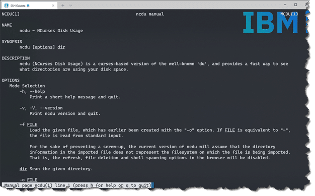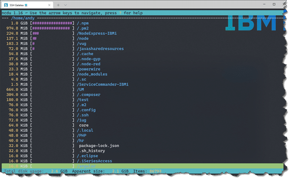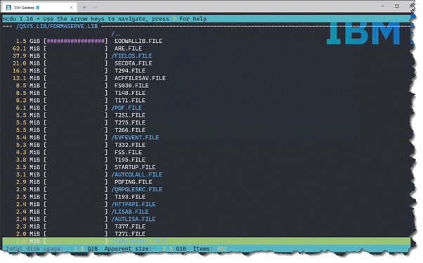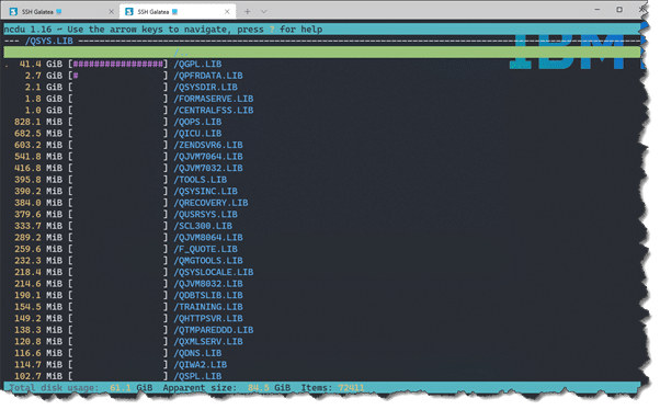 NCDU is installed on your IBM i by using yum. From a shell session, run the command listed below.
