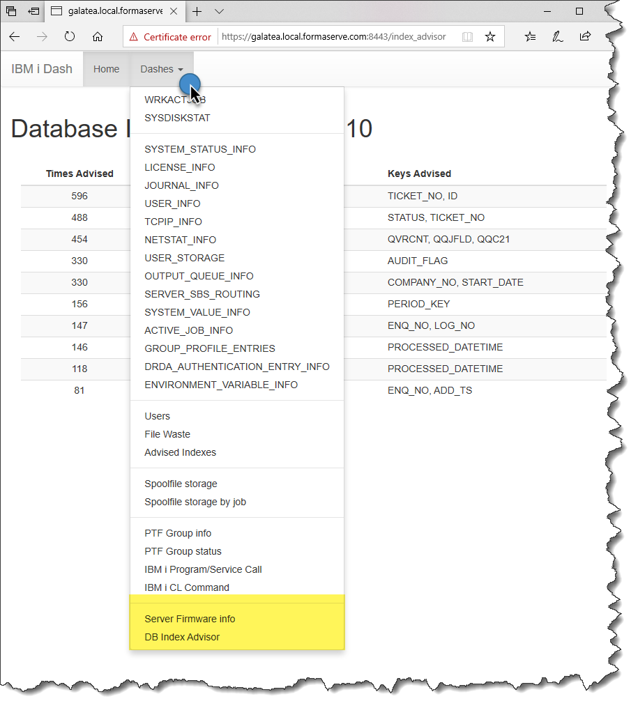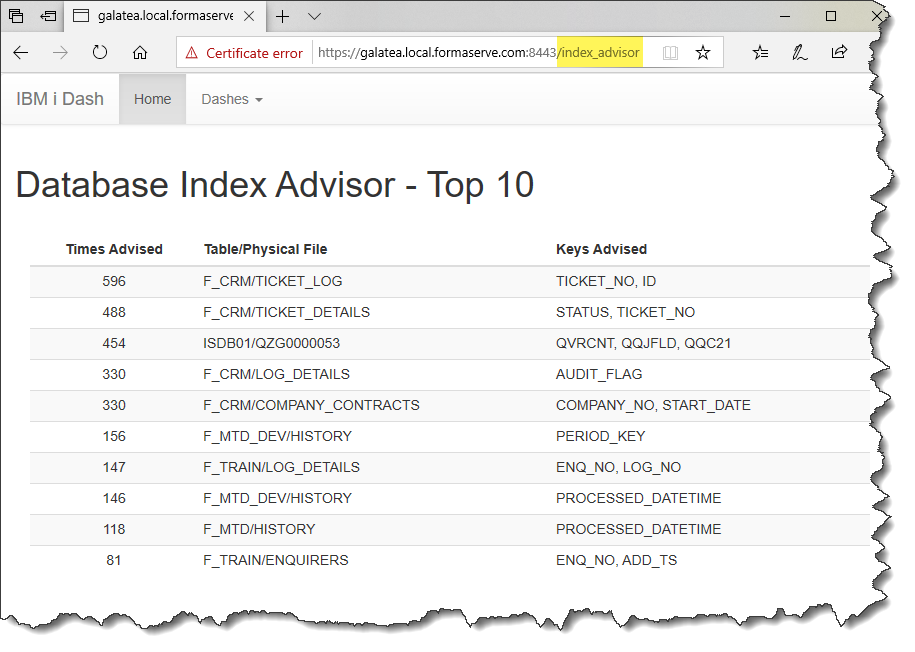 Next to test the index advisor. This time append /index_advisor to the original URL.