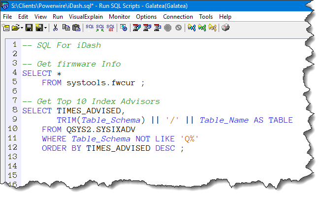 Having verified these two statements give me the results I want for the two new dashes; I now need to include them within the iDash application.