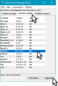 On our box, we have Nodejs version 8.10 installed, if we need to update this to version 8.11, we use the Updates Available tab to select our requirement.