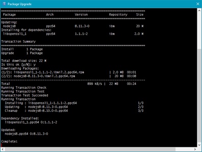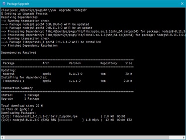 Going forward, the problem IBM encountered with continuing this maintenance path for Open Source was with dependencies, for example, Node.js might have a dependency on OpenSSL, so this would have to be included in any installation of Node.js. So, IBM no longer package open source software in the form of a PTFs.