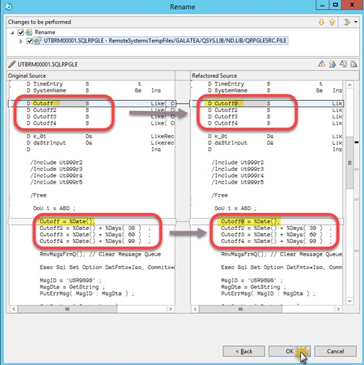 In the following code, you will see I’ve defined 4 cut-off fields, Cutoff, Cutoff2, Cutoff3, Cutoff4. I now want to change the variable Cutoff to Cutoff0.