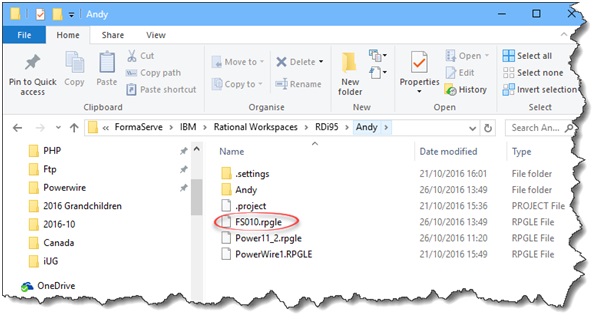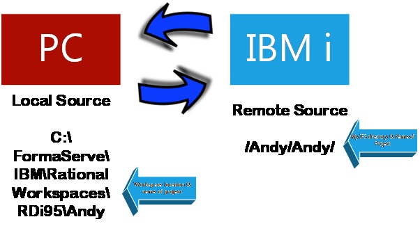 and my source is held locally in my c:\FormaServe\IBM\Rational Workspaces\RDi95\Andy folder.