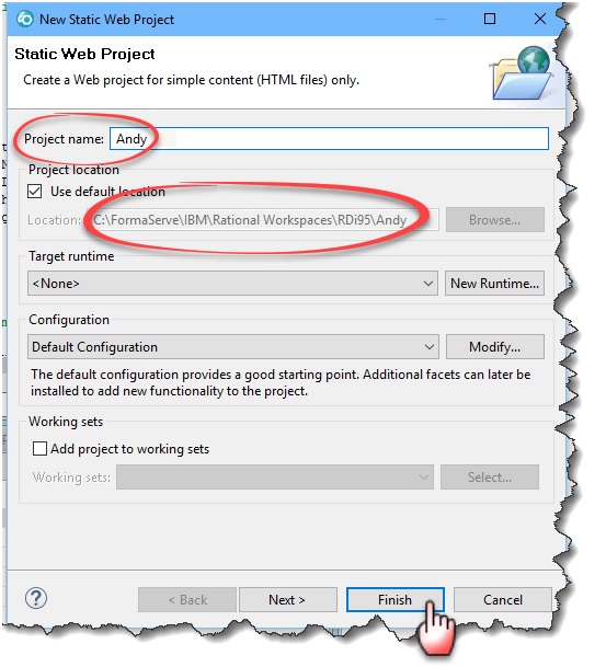 I am using a static web project, but you can use any Eclipse project type, except IBM i Projects, as stated earlier in this article.