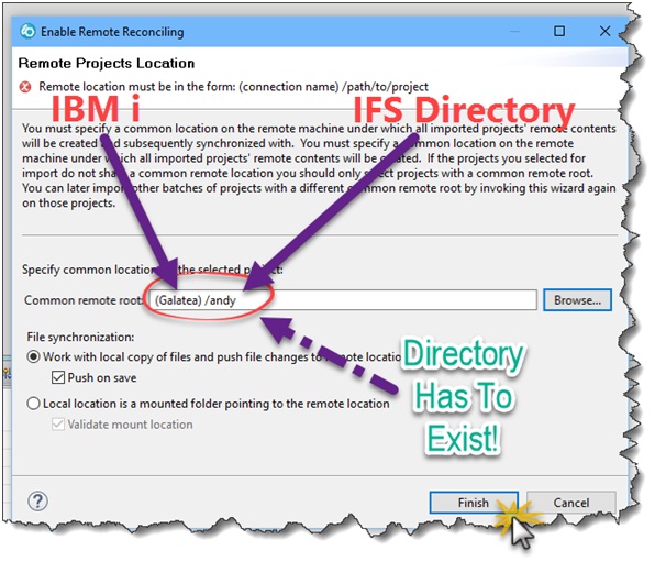 The Common remote root input field is used to point to our systems IFS.