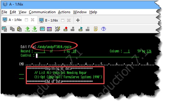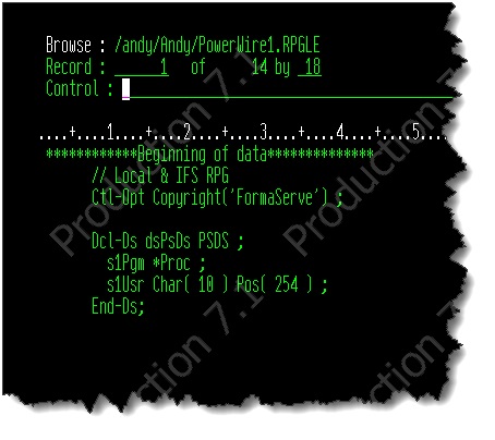 To show this I created a new source from our good old green screen, and saved it in my IFS folder. This source was named FS010.rpgle.