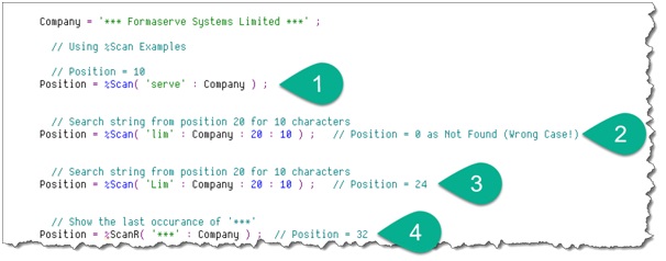 The %Scan BIF has been enhanced to allow you to specify the length of the scan to search for a particular string.