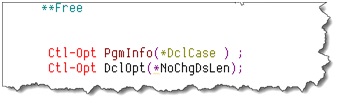 Another, very small enhancement, is to specify the control keyword DclOpt, with a parameter of *NoChgDsLen. This additional parameter allows us to define a data-structure without a length even though one of the sub-fields is based on another field.
