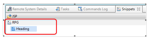 Our Snippets view now has a RPG section and newly created Heading snippet.