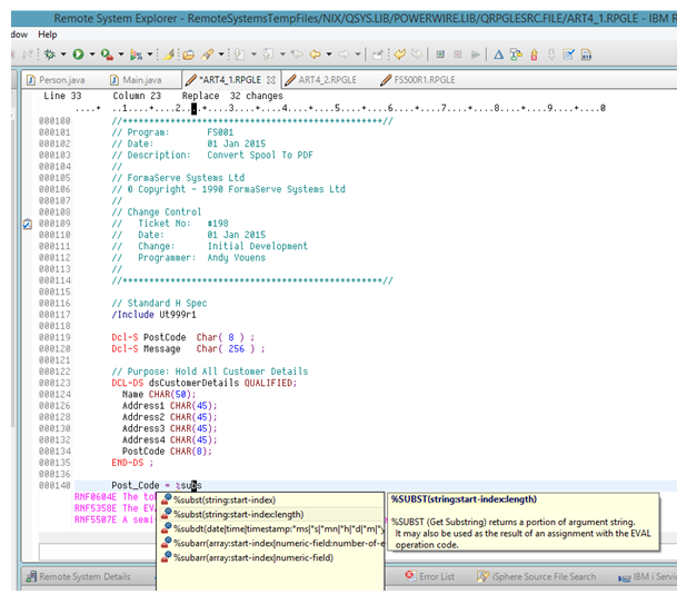 I’m going to run through some of the shortcuts/wizards we can employ with RPG using Rational Developer for i (RDi).