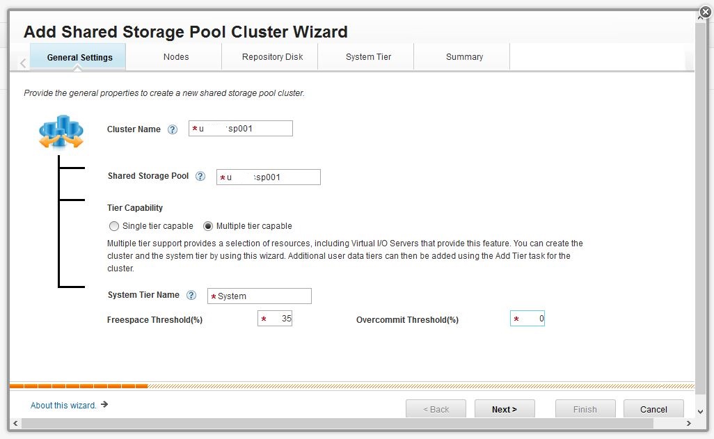 Name your Cluster and your Shared Storage Pool. I normally give these the same name, after all you can only have one SSP per Cluster . . . . at the moment.
